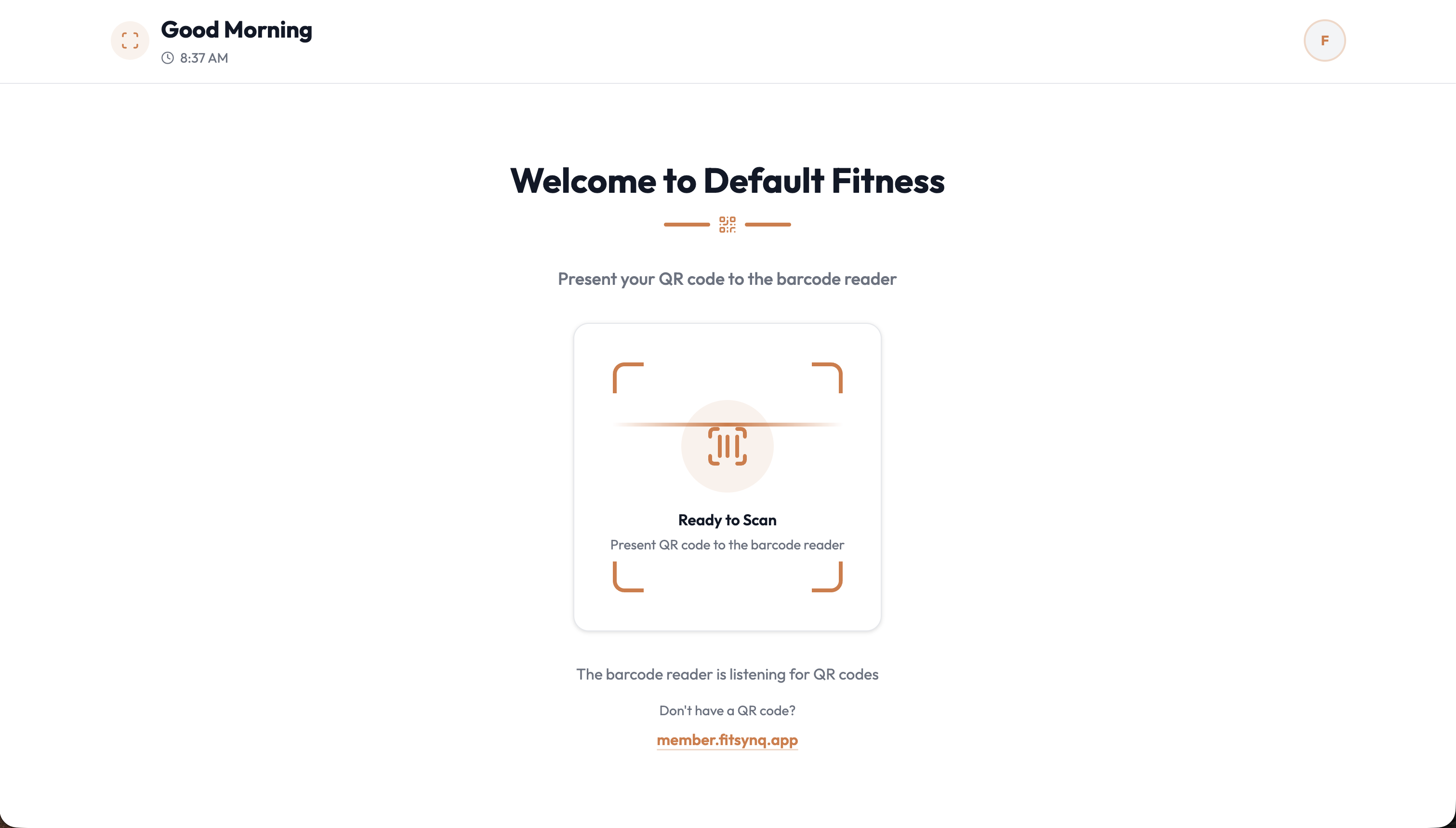 One scan and they're in. The kiosk works with webcams or USB barcode readers, so you can deploy whatever hardware suits your space. New members register on the spot—no app required. And when the internet goes down, check-ins keep working.